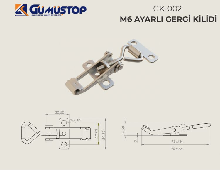 GK-002 | Ayarlı gergi kilidi 75-95 | Galvaniz kaplamalı çelik | 75-95mm | 39.5mm | 14.5mm |